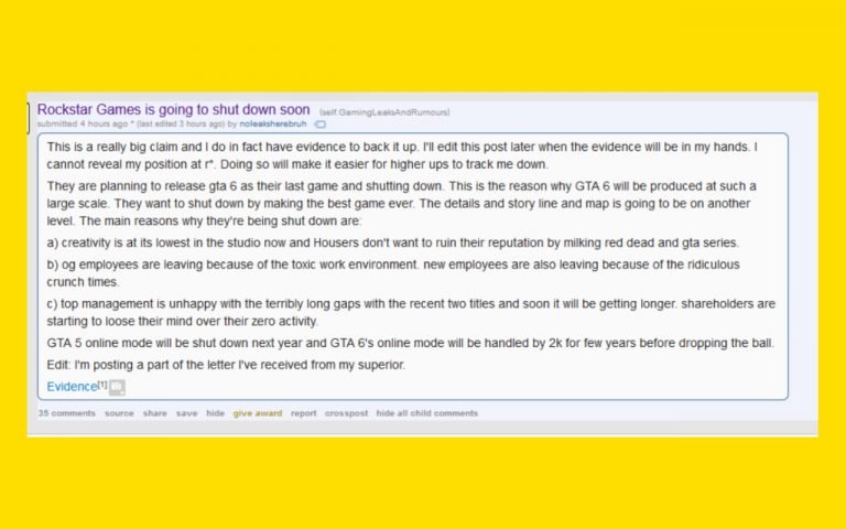 İddiaya göre Rockstar Games, uzun süredir beklenen oyun GTA 6‘yı duyurup, faaliyetlerine son verecek. Bu nedenle oyunun bekleme süresinin bu denli uzadığı söyleniyor. Firmanın yapabileceği en iyi oyunu oyuncularla buluşturup, oyun geliştirmelerine son vereceği iddia ediliyor.